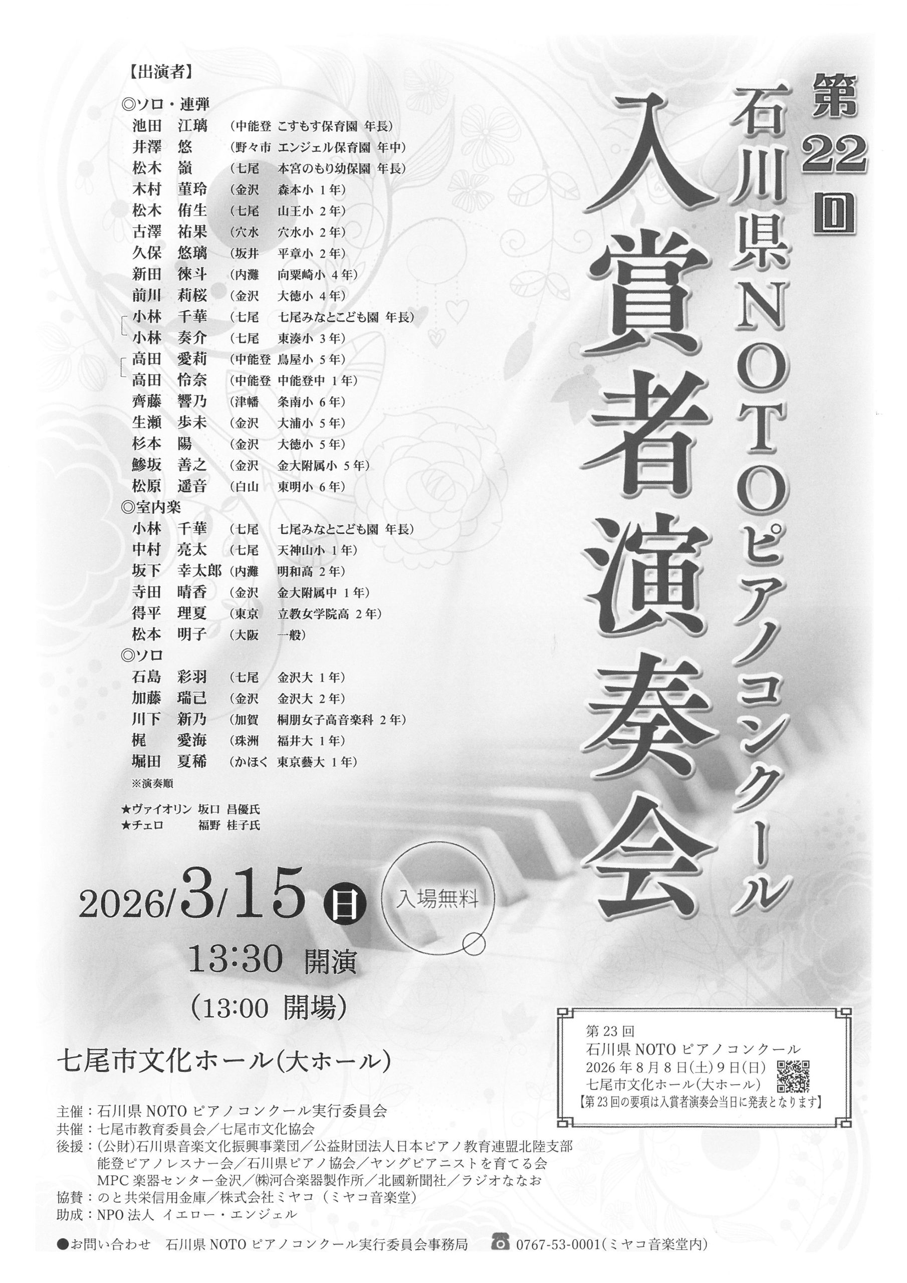 主催・お問い合わせ:石川県NOTOピアノコンクール実行委員会