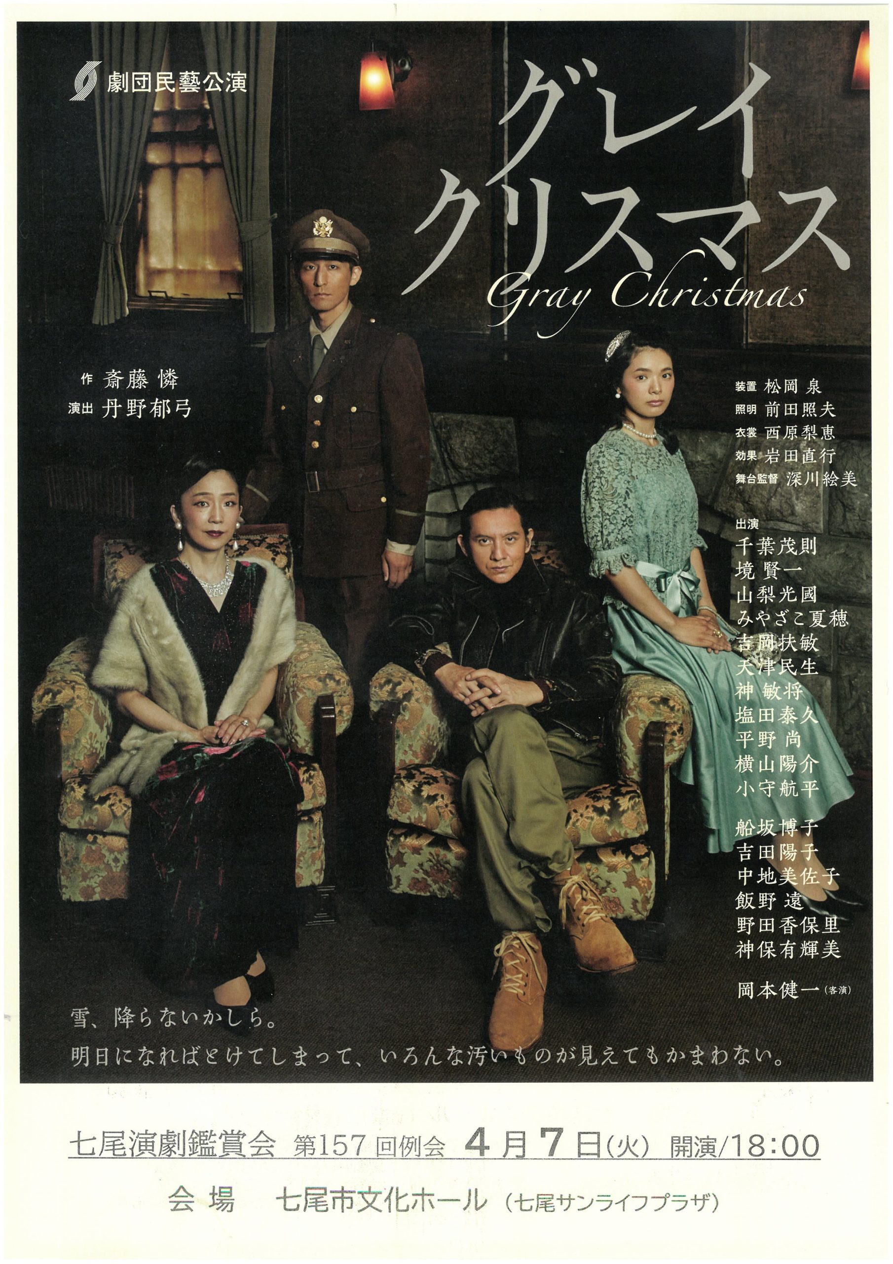 ホーム » 七尾市文化ホール » 七尾市文化ホールー催物案内 » 催物案内:令和8年4月7日(火) 七尾演劇鑑賞会 第157回例会 グレイクリスマス