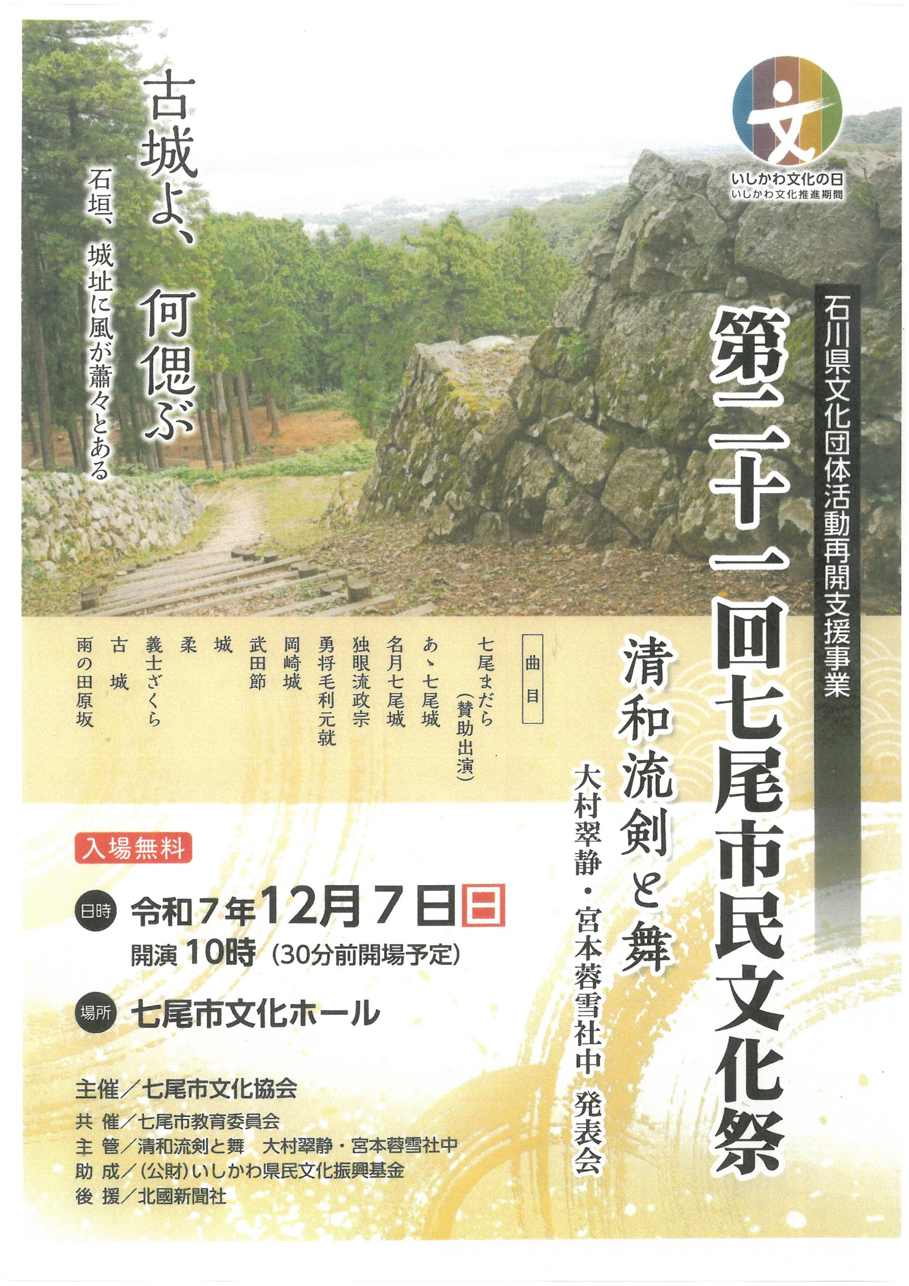主催:七尾市文化協会 共催:七尾市教育委員会主管:清和流剣と舞 大村翠静・宮本蓉雪社中