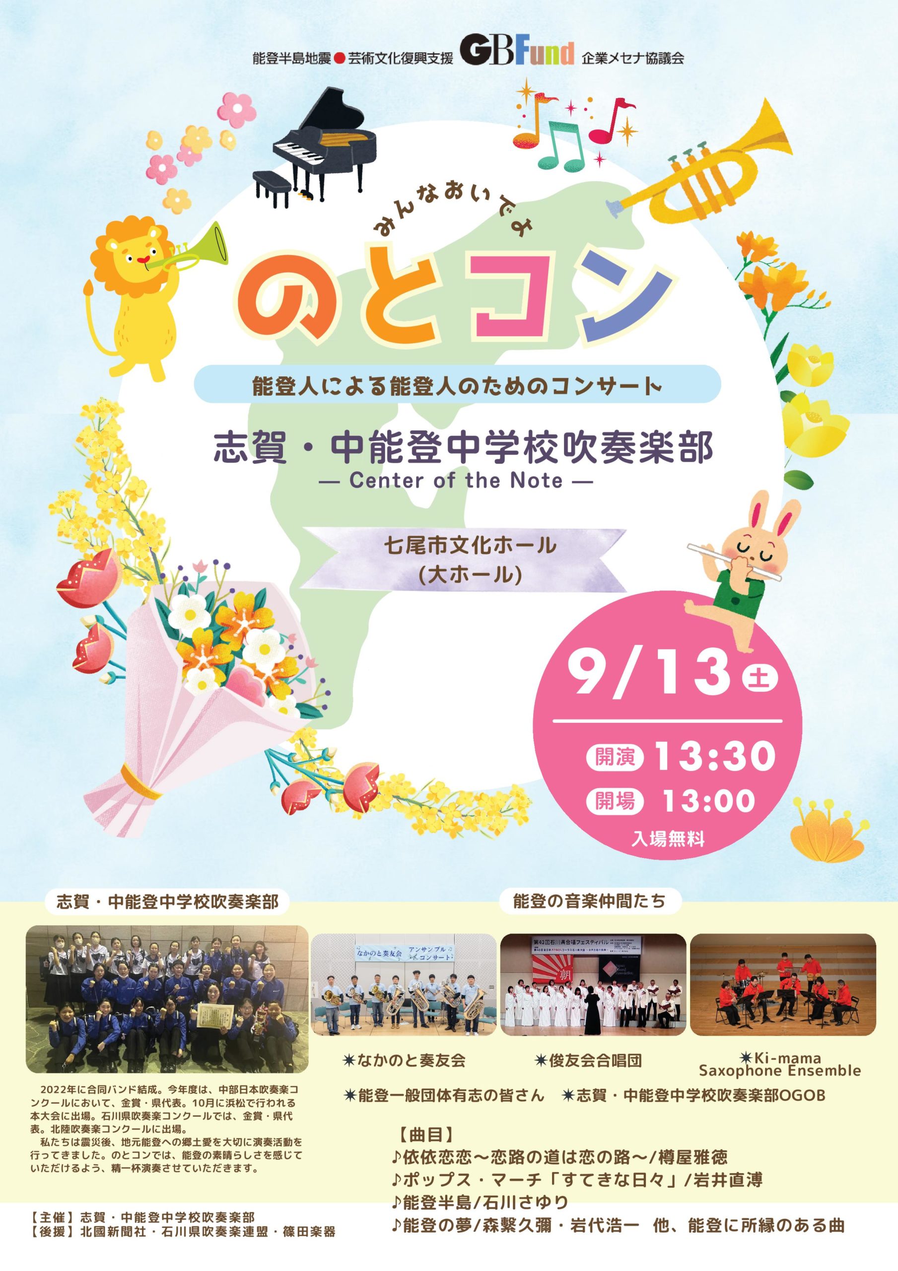 催物案内:令和7年9月13日(土) のとコン 志賀・中能登中学校吹奏楽部 能登人による能登人のためのコンサート