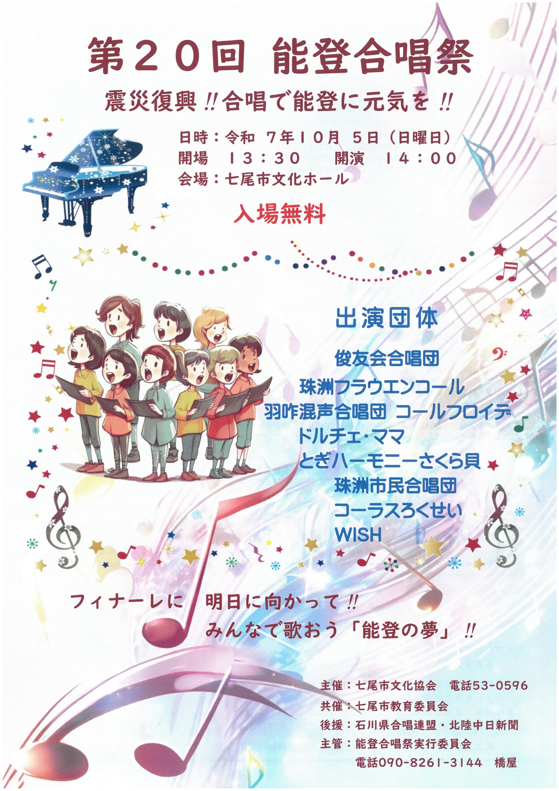 催物案内:令和7年10月5日(日) 第20回 能登合唱祭